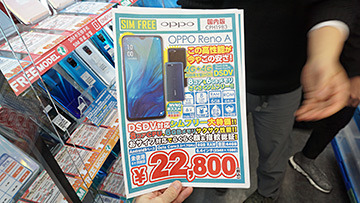 「OPPO Reno A」の未使用品が税込22,800円!おサイフケータイ対応の6.4型スマホ