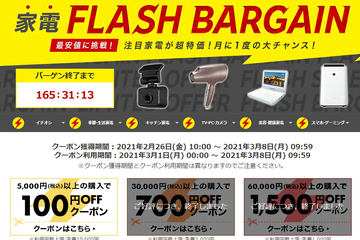 楽天「家電FLASHバーゲン」、東芝液晶TVやドラレコが低価格に