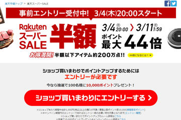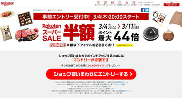4日20時から「楽天スーパーSALE」、ロボット掃除機からプリウスまで半額