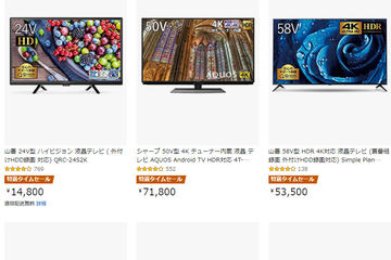 Amazonタイムセール1日まで。シャープやハイセンスの4K液晶TVが低価格に