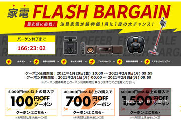 楽天「家電FLASHバーゲン」、東芝液晶TVやウッドコーンコンポが低価格に