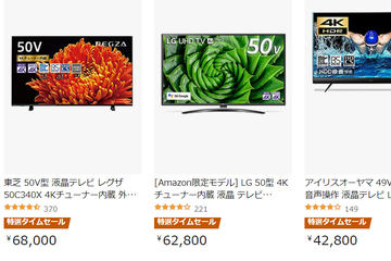 Amazon「タイムセール祭り」レグザ50型4K液晶TVが68,000円に