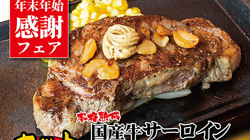 最大858円お得に国産サーロインステーキ! いきなり!ステーキが「年末年始 感謝フェア」を開催