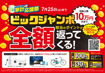 ビックカメラ、上限10万円のポイントバック「ビックジャンボ」