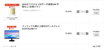 VAIO、直販で本体と同時購入で32GB分+1年間無制限200kbpsのSIMや21.5型液晶が無料に