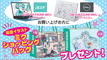 “初音ミクノートPC”購入でショッピングバッグをプレゼント、ツクモネットショップで実施中