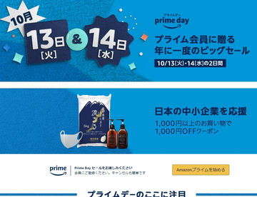 Amazonプライムデー、10月13、14日の平日開催。スタンプラリーも