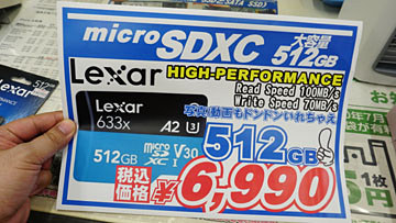 Lexarの512GB microSDXCカードが税込6,990円に値下がり