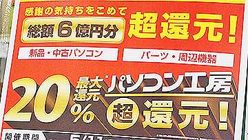 総額6億円分を還元! パソコン工房で最大20%還元キャンペーンが実施中