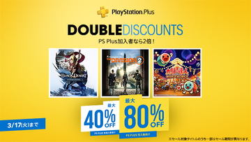 PS Plus加入者は最大80%オフ! PS4用タイトルセール「Double Discount(加入者なら2倍!)」開催