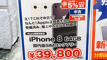 iPhone 8が税込39,800円など、Appleのメーカー再生品がじゃんぱらに多数入荷