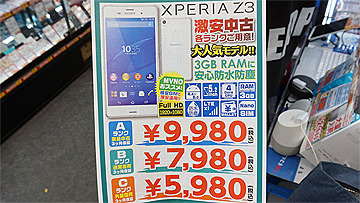 人気のXperia Z3が大量入荷、税込5,980円からの中古品セール