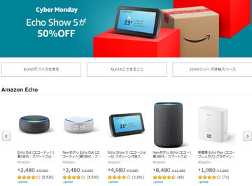 スマートスピーカー“Echo”シリーズが半額などで販売中!【Amazon Cyber Monday Sale】