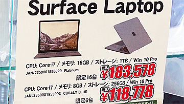 Core i5搭載の「Surface Laptop」が大量入荷、69,980円からセール