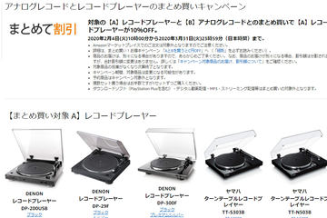 Amazon、レコードプレーヤーとアナログレコードまとめ買いでプレーヤーが10% OFF