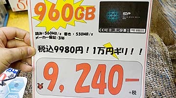 960GB SSDが税込9,980円!あきばお~が“赤字覚悟”のセール実施中