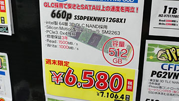 Intel製NVMe SSD「660p」の512GBが6,580円でセール中、26日まで