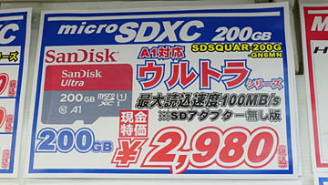 SanDiskの200GB microSDXCカードが実売2,980円に