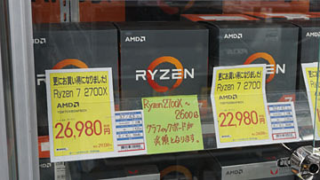 Ryzen 7 2700Xなど3モデルが一部ショップで値下がり、5月最安値よりも安価に