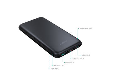 AUKEY、懐中電灯搭載、容量10,000mAhの薄型軽量モバイルバッテリーが500台限定で1,599円