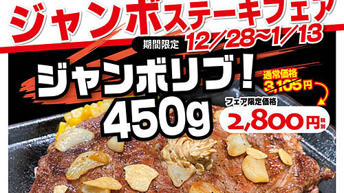 厚切りステーキが最大305円引き! いきなり!ステーキが「ジャンボステーキフェア」を開催