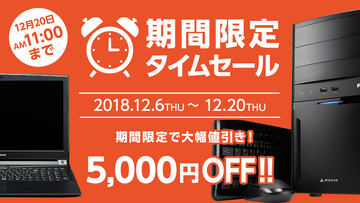 マウスコンピューターのパソコンが5,000円OFF!12月20日までの期間限定セール実施中