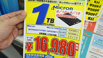 Micronの1TB SSDが期間限定で16,980円!ツクモでセール中、2年保証付き
