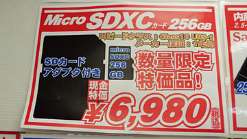 容量256GBのmicroSDXCカードに安値品、東映無線で税込6,980円