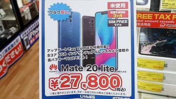 6.3型SIMフリースマホ「Mate 20 lite」がじゃんぱらで税込27,800円、未使用品