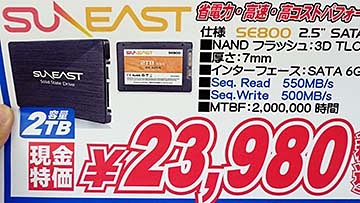 SSDの値下がり続く、2TBが過去最安クラスの税込23,980円に