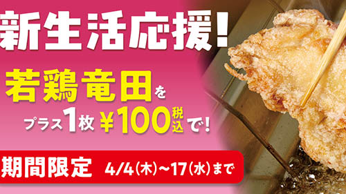 若鶏竜田が税込100円! Sガストが新生活応援フェアを本日4日(木)から2週間開催