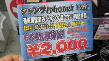 初心者お断りのiPhone 4が税込2,000円!保証無しのジャンク品を大放出!