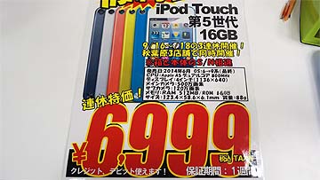 第5世代iPod touchが税込6,999円でセール、カラーは5色