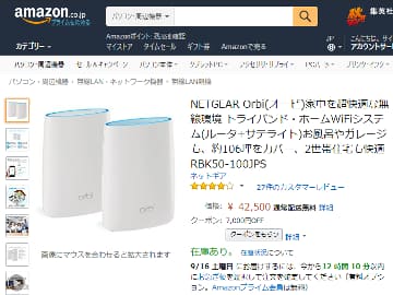 家全体をカバーするWi-Fiシステム「ネットギア Orbi」がAmazonで7,000円引き