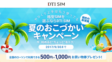 SIM契約でローソンお買い物券がもらえる「DTI SIM 夏のおこづかいキャンペーン」