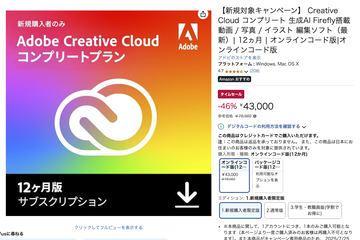 アドビ「Creative Cloud コンプリート」12カ月分のオンラインコードが46% OFF