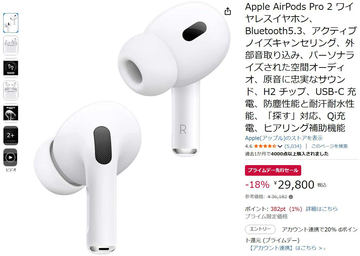 アップル「AirPods Pro 2」が3万円以下。Amazonプライムデー先行セール