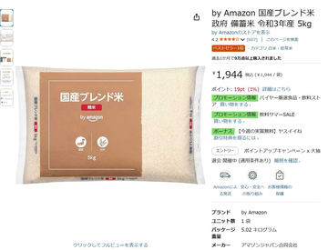 Amazonで“政府備蓄米”販売中。5kgで1944円、1人1点