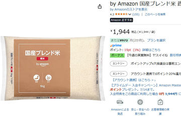 Amazonで“政府備蓄米”販売中。5kgで1944円、1人1点