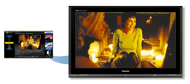 アクトビラとは、簡単に言えばテレビ本体だけで利用できるデジタル情報配信サービスだ。「デジタル情報配信」というとなにやら難しく聞こえるが、平たくいうとホームページのような図版テキストベースの情報から、映像、音楽のようなマルチメディア・コンテンツまでが視聴できるサービス…と捕らえてもらって構わない。じゃあ、そのデジタル情報はどこからやってくるのか…ということになってくるのだが、実は電波ではなくインターネットから。具体的に言えばブロードバンド回線だ。そのブロードバンド回線は、普段パソコンで使っているインターネット回線でOK。