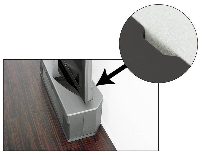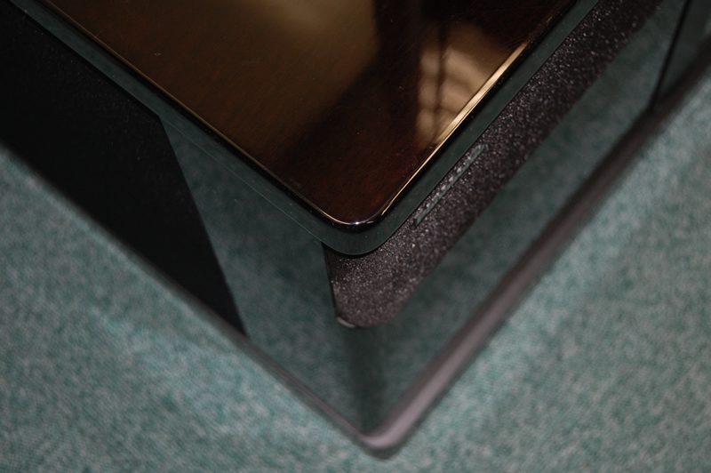 そのフォルムには、ユニバーサルデザインを追求する同社の家電的なフレンドリーさが感じられる。高級感のある天然木材の天板(SC-HTR500-K)は四隅の角が取れたマイルドなフォルムで、子供などが体をぶつける事故を防いでいる。