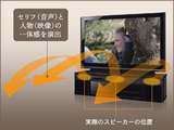 実際にビエラの最新モデルPZ750SKとコンビで視聴してみよう。PZ750SK本体のスピーカーもテレビとしてはかなり贅沢で意外にレンジ感があるのだが、ビエラリンクで本機のサラウンドに切り替えると上下左右の音像と包囲感がまるで違ってくる。狭い部屋から広い映画館に入ったような広がり感のあるサラウンドを楽しめる。リアルセンター機能の効果も確実で、映画字幕の上あたりから台詞が聞こえる印象で違和感がない。フロントサラウンドにありがちな音場の中抜けが感じられない点もセンタースピーカー搭載のメリットだろう。振動キラーの効果も確かで、ボリュームを中程度にして天板に手を置いても大きな振動は感じられない。それでいて、テレビ本体と比べると重低音のインパクトはシネマサラウンドにふさわしいレベルにまで向上している。