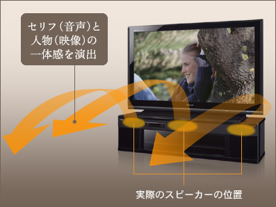 そしてスピーカーにも注目したい。本機は左右スピーカーとサブウーハーのほか、センタースピーカーまで備えた贅沢なスピーカー構成を採用している。ポイントはセンタースピーカーで、これがついていないラックシアターもある。センタースピーカーには映画の台詞やボーカルなどの定位感(鳴る場所の存在感)を増して聞きやすくする効果があるが、一般的に言って、置き場所が適切でないと画面とは別の場所から台詞が聞こえる違和感を感じるケースもあったりする。本機のセンタースピーカーはこうした点に配慮していて、同社独自の「リアルセンター機能」で、ラック内蔵のスピーカーでありながら、あたかもテレビ画面からセンターサウンドが出ているように聞こえる音場を実現している。このため、スクリーンの裏にスピーカーがある映画館のように映像と一体感のあるサラウンドが楽しめるのだ。