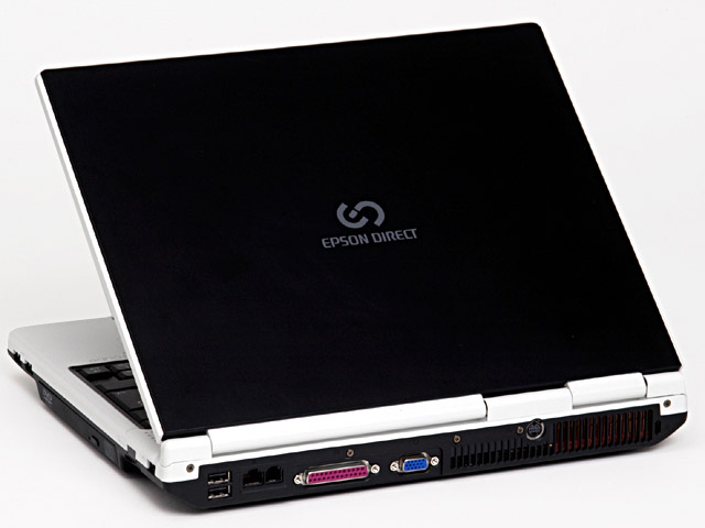 最初に目に付くのが、ボディを白、キーボードを黒としたデザイン。液晶パネル裏もつや消しの上品な黒になっており、PCばなれしたシックなデザインになっている。また、角を丸く落としているあたりも、従来のノートPCとは異なったデザイン処理で、この結果、カラーリングだけ見ていればちょっとクールなイメージにも関わらず、全体として温かみを感じさせることに成功している。堅牢で実直なイメージが強かったエプソンダイレクトの筐体の中では意欲作といっても良く、この洗練されたな筐体なら女性にもあうデザインともいえるかもしれない。