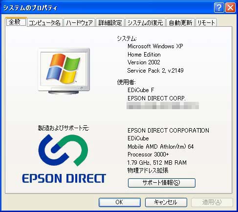 ・EDiCube F550P(1400×1050ピクセル ・Windows XP Professional)