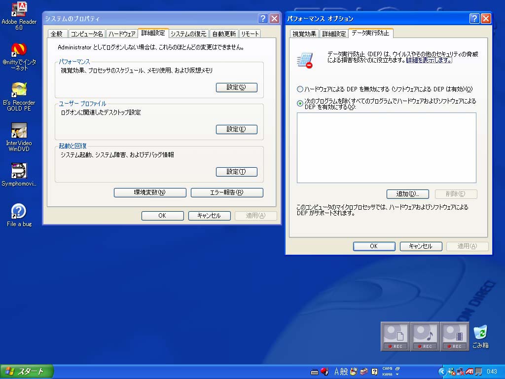 Protectionと呼ぶ)機能は、コントロールパネル→システム→詳細設定→パフォーマンス→データ実行防止から設定できるようになる(Photo02)。