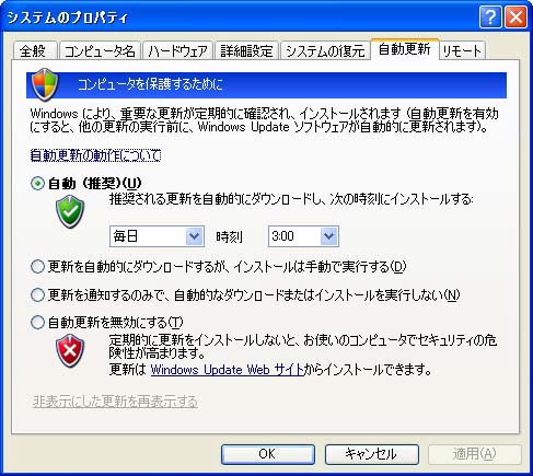 | ▲ Service Pack 2をインストールすると、例えば自動更新はこんな表示に変わる。 |