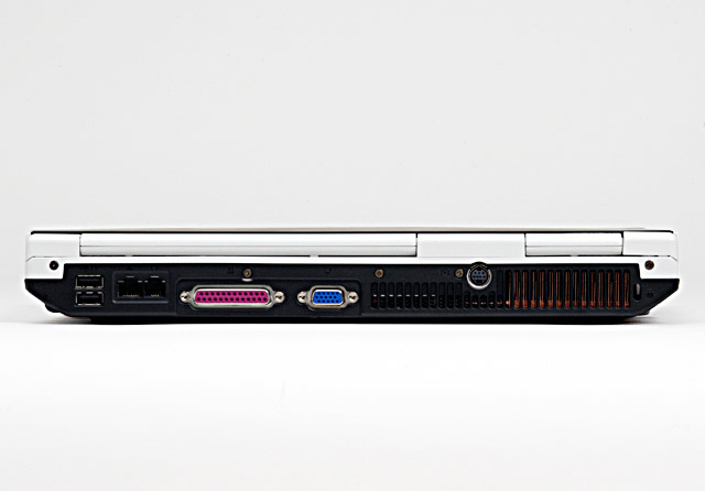 ▲ 背面にはUSB2.0×2、LAN、VGA出力、パラレル、Sビデオ出力など。 |