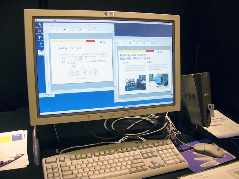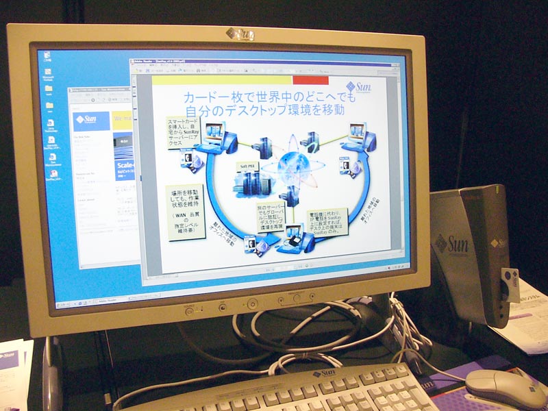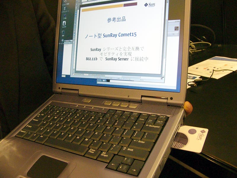 802.11bの無線LANを内蔵したノート型のSun Ray端末も参考展示されており、設置する環境に合わせて端末を選ぶことも可能となる予定だ。