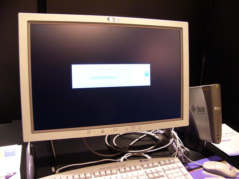 2004」の展示会場にあるサン・マイクロシステムズのブースでは、前日に発表されたUltraSPARC IVやOpteronを搭載したサーバーなど同社の製品が展示されていたが、その中にWindows